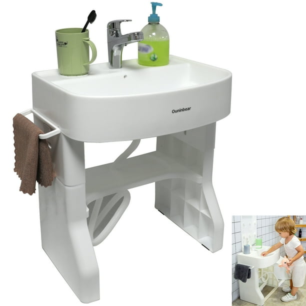 Httmt Washstand Self Care Station Portable Wash Basin For Child Kids Baby Toddler Kearly Training Learning Plastic Washbasin Simulation Towel Shelf P N Et Baby007 White Walmart Com