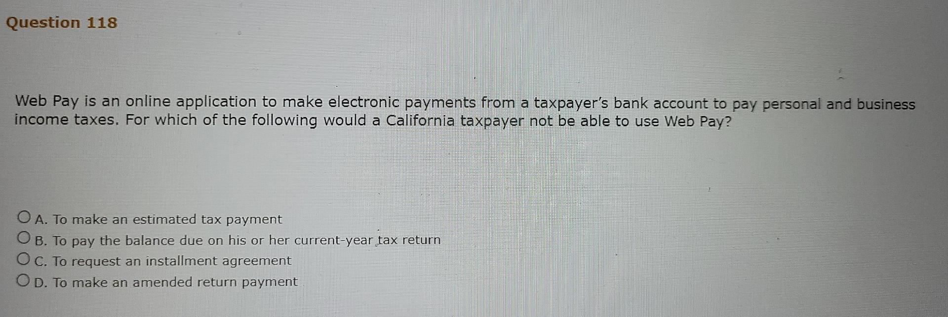 Solved Question 118 Web Pay Is An Online Application To Make Chegg Com